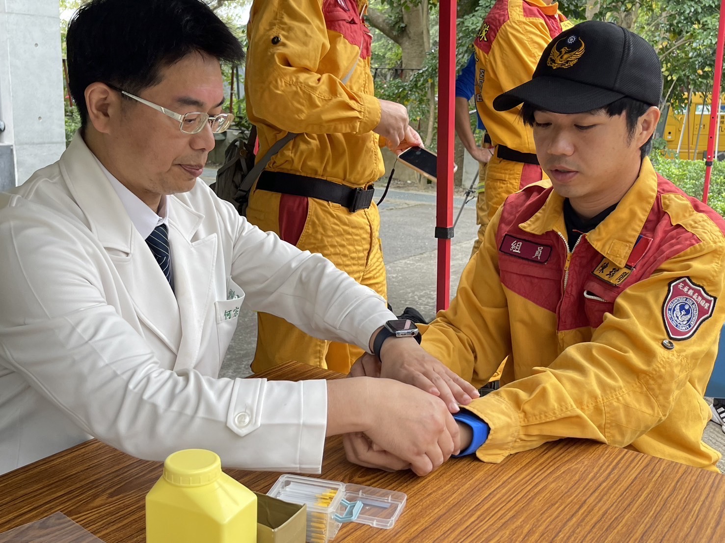 本會何宗融副執行長加入災難醫療隊,前往災區幫搜救人員把脈、針灸,解除痠痛,這是全台首創,本會與有榮焉