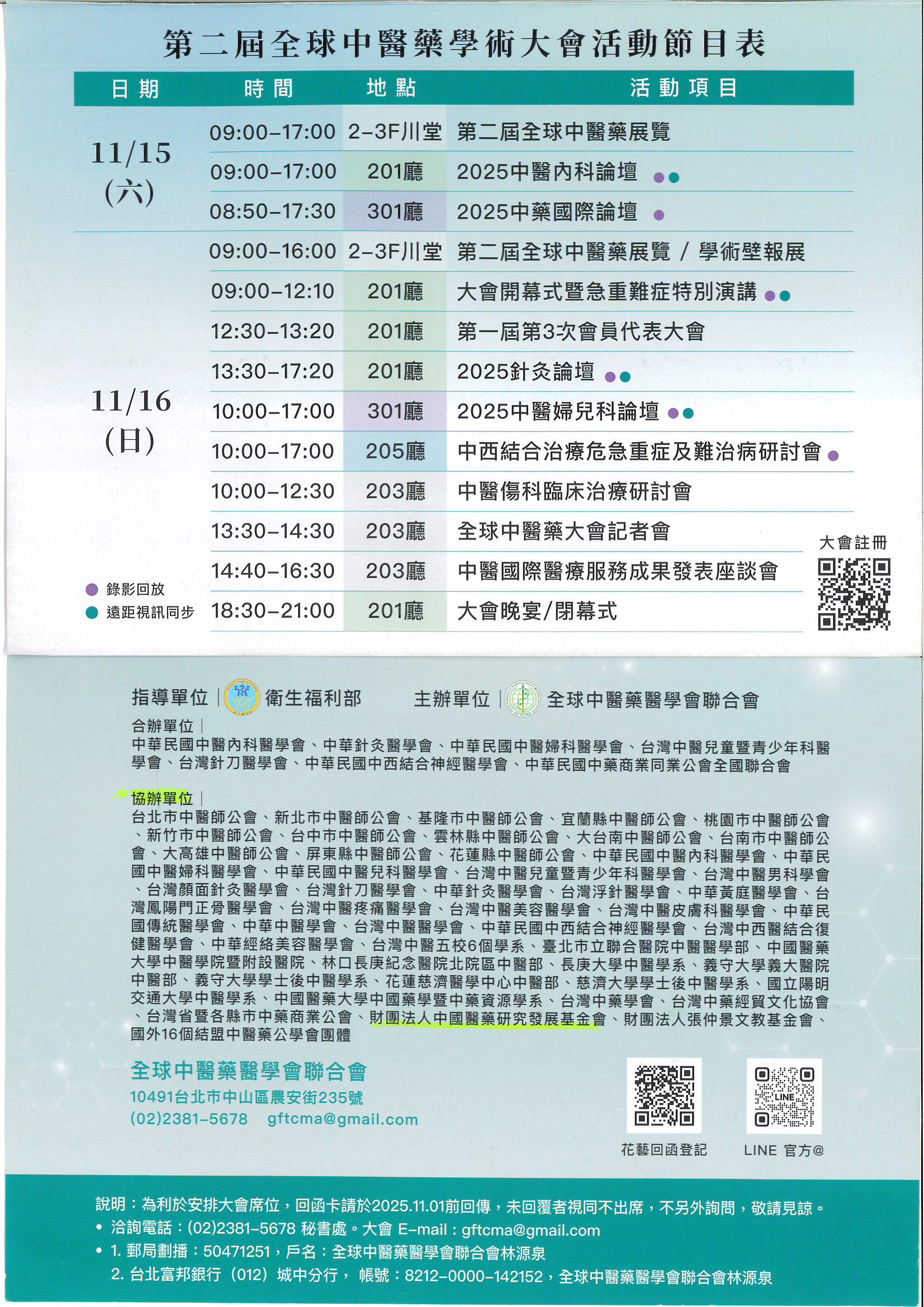 2025年11月15日~11月16日第二屆全球中醫藥學術大會,本會為協辦單位