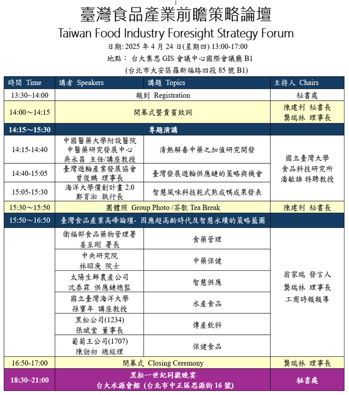 2025年4月24日董事長受邀到台灣食品產業前瞻策略論壇演講中藥保健