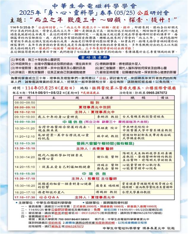 2025年5月25日中華生命電磁科學會邀請本會董事長演講